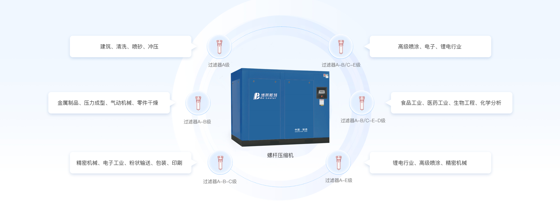 事螺桿式壓縮機(jī)、冷凍式干燥機(jī)、吸附式干燥機(jī)、真空泵、高精密過濾器等空氣動(dòng)力系統(tǒng)設(shè)備研發(fā)、